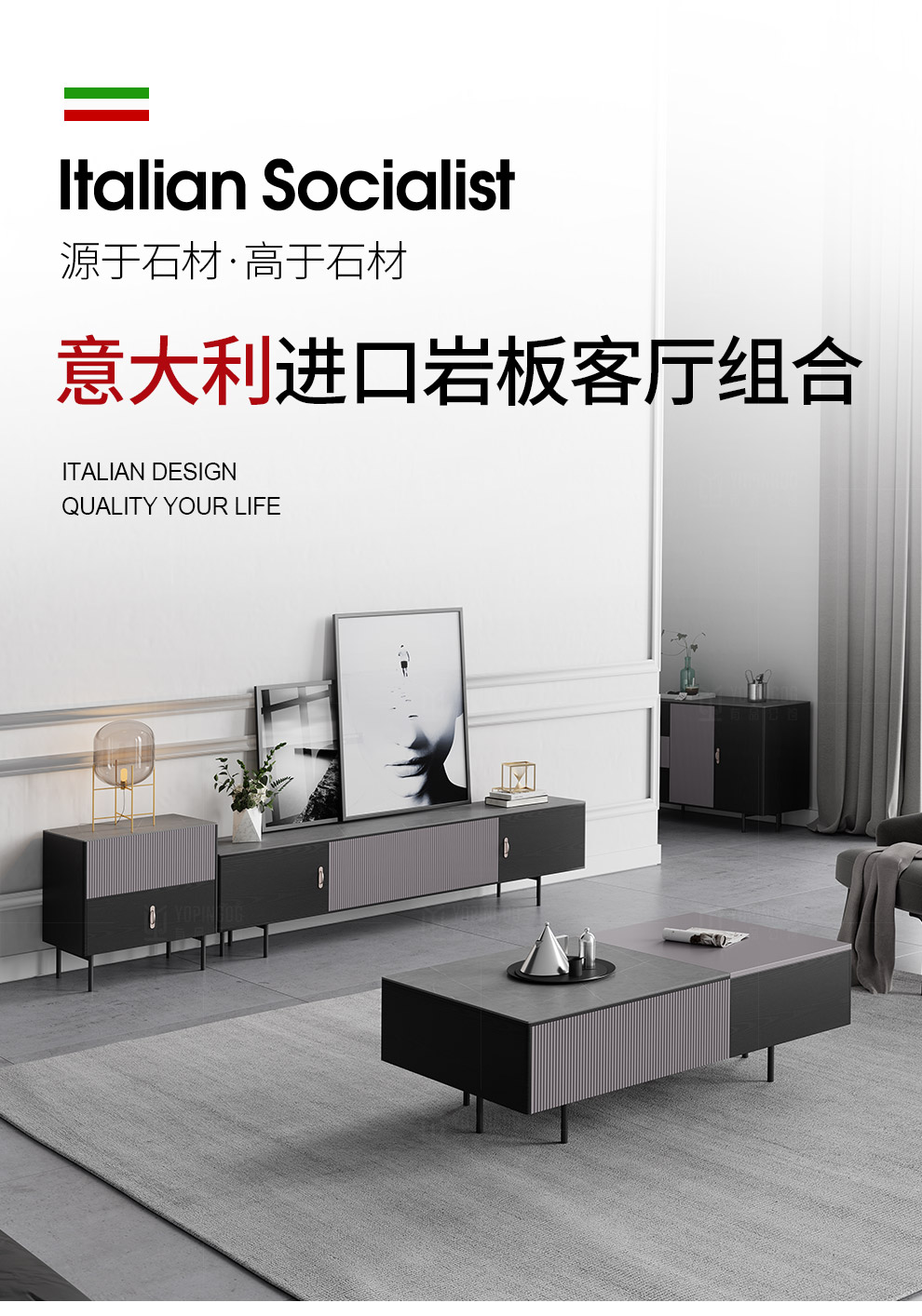 | 商品名称 | 有品公館イタリア式の極簡単な岩板のテレビの箱のお茶の組み合わせの近代的な簡単な戸建ての客間の北欧の風格のテレビのカウンターのお茶の何+テレビの箱 |