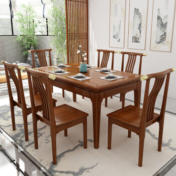 景腾 餐桌 金丝檀木新中式餐桌椅组合全实木餐台方桌现代家用吃饭桌子组合 一桌四椅【图片 价格 品牌 报价】-京东