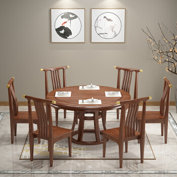 景腾 餐桌 金丝檀木新中式餐桌椅组合全实木大圆桌1.35米1.5m家用吃饭桌子圆形餐台 一桌六椅【图片 价格 品牌 报价】-京东