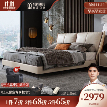 有品公館のベッドの意味式はきわめて簡単で現代的です。北欧の軟包1.8メートルの結婚ベッドネットの赤いタイプ(頭の層の牛革)のシングルベッド+ベッドの頭の棚*2 1.8メートルの高さの箱の金